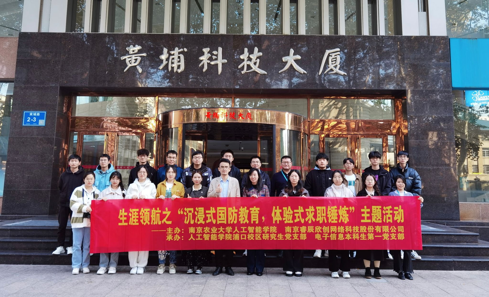 2023年11月22日上午,由南京农业大学av影片 与南京睿辰欣创网络科技股份有限公司联合主办,av影片 浦口校区研究生党支部与电子信息本科生第一党支部联合承办的“沉浸式国防教育,体验式求职锤炼”生涯领航主题活动成功举办。旨在更好地促进不同高校平台、不同学科专业之间的学生交流,本次活动广泛动员了院内外多专业本研在读学生代表近二十人,另特邀了数位目前就读于东南大学、南京理工大学的av影片 校友,在学院学工办副主任湛斌、本科生辅导员于佳琪的带领下,共同参与此次活动。