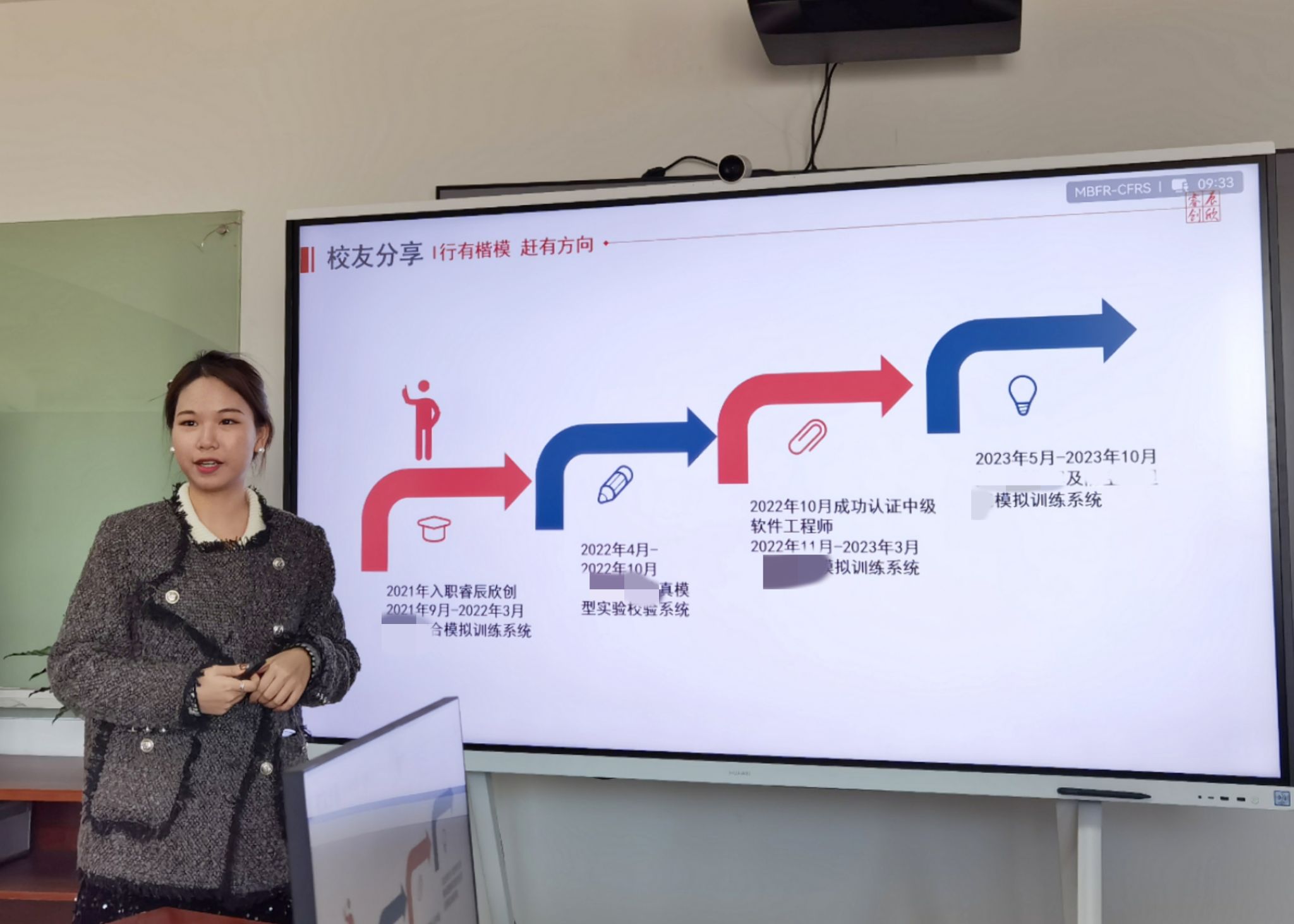 接着,av影片 优秀校友,计算机科学与技术专业2020届本科毕业生童佳艳,就入职睿辰欣创以来的成长经历与感悟,向学弟学妹们作了精彩分享。她的生动阐述有效引导学弟学妹们认知到了以下几点:①实习是快速成长的有效途径;②从做中学,从学中做——化“经历”为“经验”;③良好的团队氛围赋能个人成长。