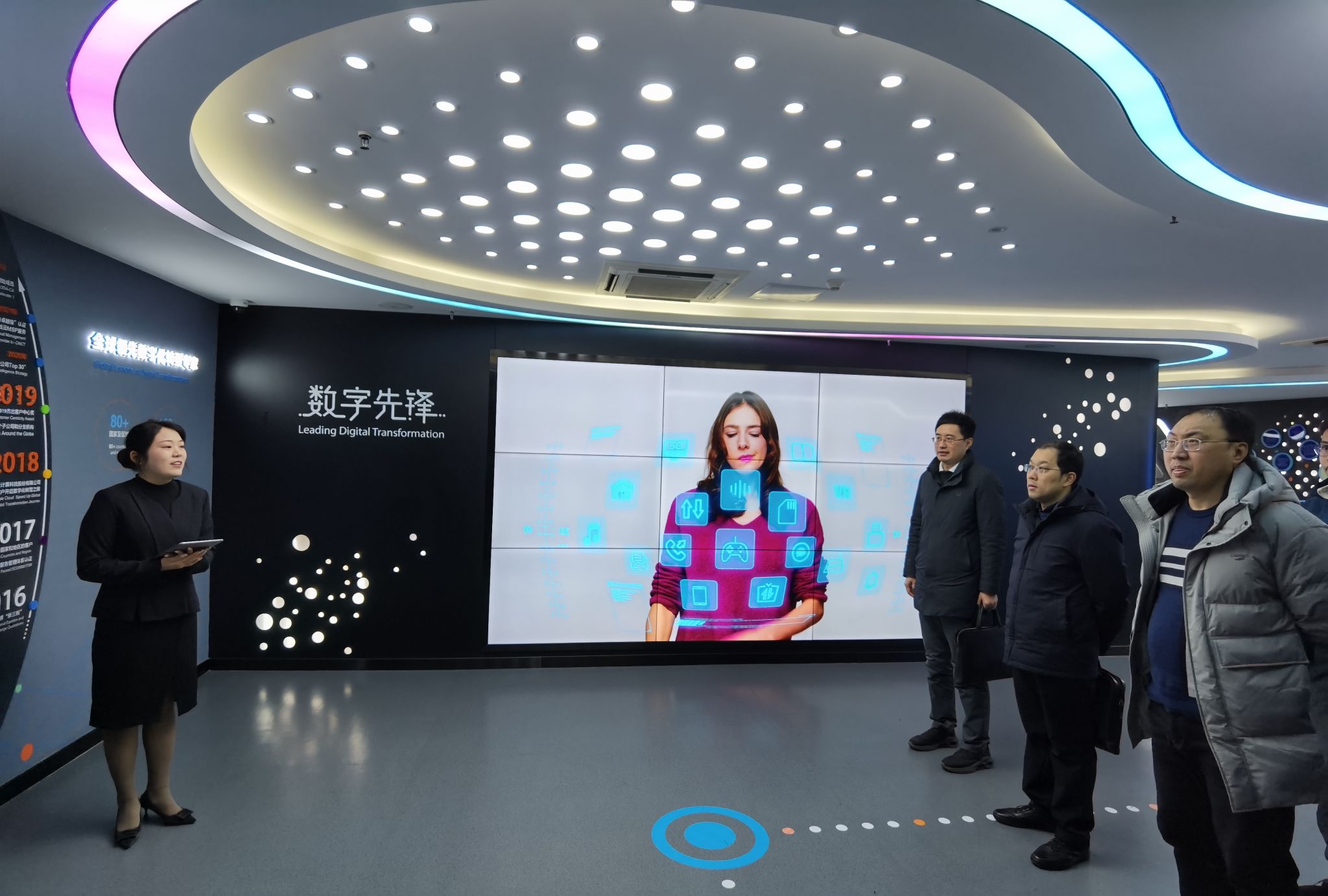 在蒋月题的陪同下,院领导一行首先参观了公司展厅。