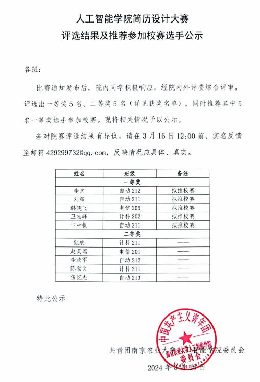 av影片 简历设计大赛评选结果及推荐参加校赛选手公示